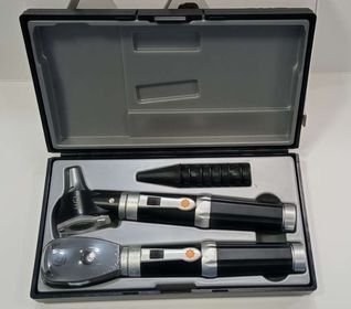 Kit otoscopio Oftalmoscopio com fibra óptica, luz halogena com lamapada LED, acompanha 8 especulos e a maleta pra guardar tudo.