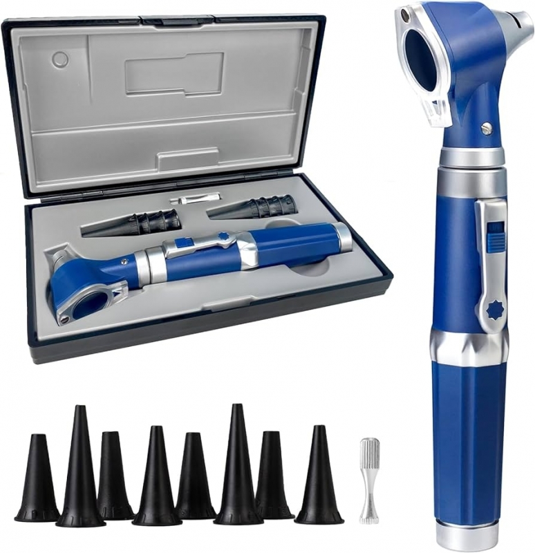 Otoscopio com lampada LED, luz halogena, com 8 especulos e a maleta.