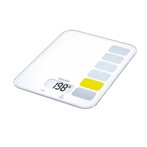 5 kg de capacidad Precisión de 1 g Indicación regulable en g, ml, ln:oz, fl:oz Tamaño de los números: 20 mm Mecanismo de desconexión automático Aviso de sobrecarga